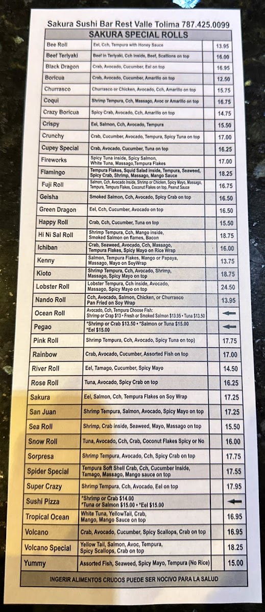 Introducing the menu at Sakura - Caguas, located in Del Rio Shopping Mall, Puerto Rico, is an exciting journey into authentic Japanese cuisine. The vibrant menu offers a delightful array of sushi options, ensuring that there is something for everyone. Guests can indulge in the Chirashi Bowl, featuring mixed sashimi, or savor the exquisite Volcano Bowl, with spicy crab and scallops.